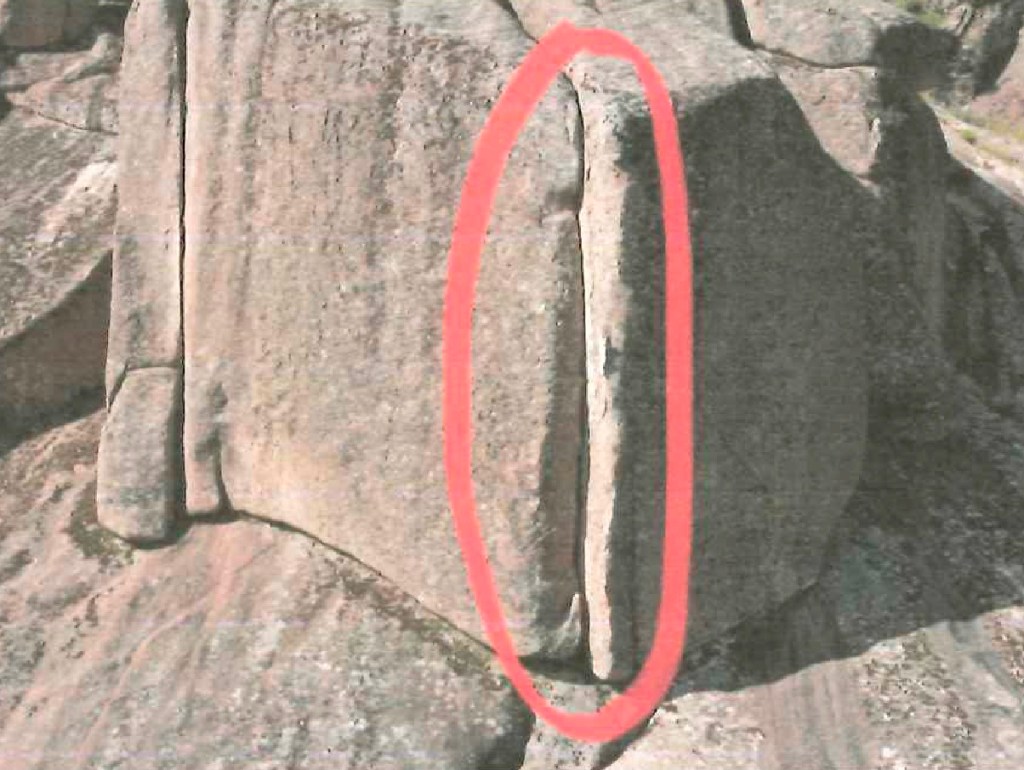 Imagino que os podéis hacer una idea de lo difícil que es situar en una foto el punto exacto en el que resbaló o la posición de los seguros. No sólo por los dos años que habían pasado, también por el hecho de que la perspectiva cambia enormemente si la vía la observamos desde abajo o desde arriba en una foto. Todos conocemos el efecto que produce la distancia en la perspectiva. La vía parece completamente diferente a lo que ves en foto del croquis mirando hacia arriba desde la reunión. Desde abajo en la vertical las distancias se comprimen. Por ejemplo en una vía de deportiva las chapas superiores te parece que están muy juntas, luego al llegar a ellas te sorprende lo alejadas que están, parece que alguien las ha separado mientras escalabas.