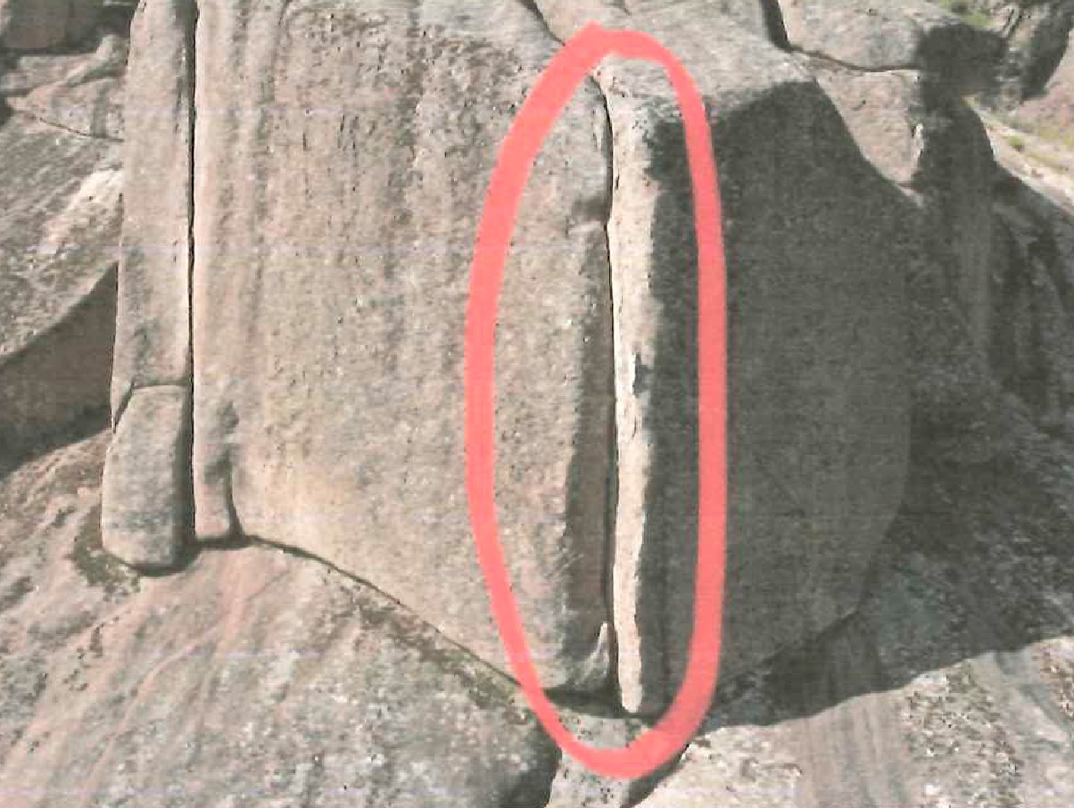 Imagino que os podéis hacer una idea de lo difícil que es situar en una foto el punto exacto en el que resbaló o la posición de los seguros. No sólo por los dos años que habían pasado, también por el hecho de que la perspectiva cambia enormemente si la vía la observamos desde abajo o desde arriba en una foto. Todos conocemos el efecto que produce la distancia en la perspectiva. La vía parece completamente diferente a lo que ves en foto del croquis mirando hacia arriba desde la reunión. Desde abajo en la vertical las distancias se comprimen. Por ejemplo en una vía de deportiva las chapas superiores te parece que están muy juntas, luego al llegar a ellas te sorprende lo alejadas que están, parece que alguien las ha separado mientras escalabas.